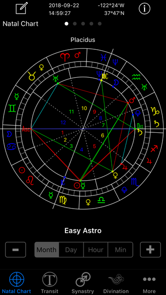 Easy Astro Astrology Charts เป็นแอปพลิเคชันที่ใช้งานง่ายซึ่งออกแบบมาเพื่อทั้งนักโหราศาสตร์ที่มีประสบการณ์และผู้เริ่มต้นเหมือนกัน ออกแบบมาสำหรับ iPhone, iPad และ iPod Touch มันให้การคำนวณทางโหราศาสตร์ที่รวดเร็วและแม่นยำ เวอร์ชันล่าสุดมีฟีเจอร์เช่นแผนภูมิ Natal และ Transit, แผนภูมิ Synastry, และเกมลูกเต๋าโหราศาสตร์ที่น่าสนใจซึ่งเพิ่มความสนุกสนานให้กับประสบการณ์ ผู้ใช้สามารถนำทางผ่านแอปได้อย่างง่ายดายด้วยอินเทอร์เฟซที่ใช้งานง่าย
